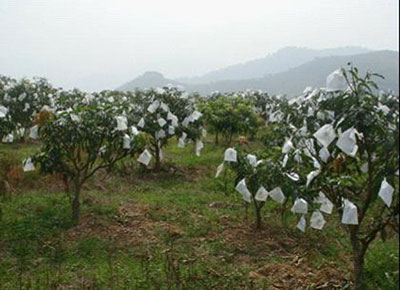 ⒌目前,也有部分果農用報紙套袋,它雖然有成本低的優點,但因為不經消毒,潛在細菌多,而且制作麻煩,套袋人工投入加大,存